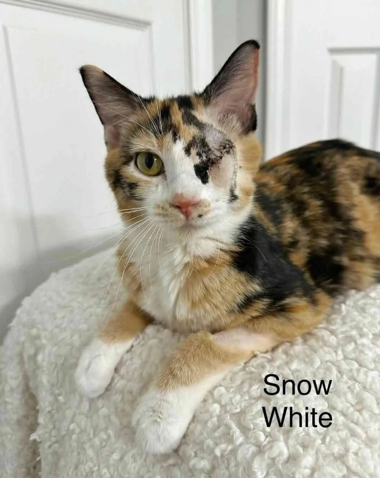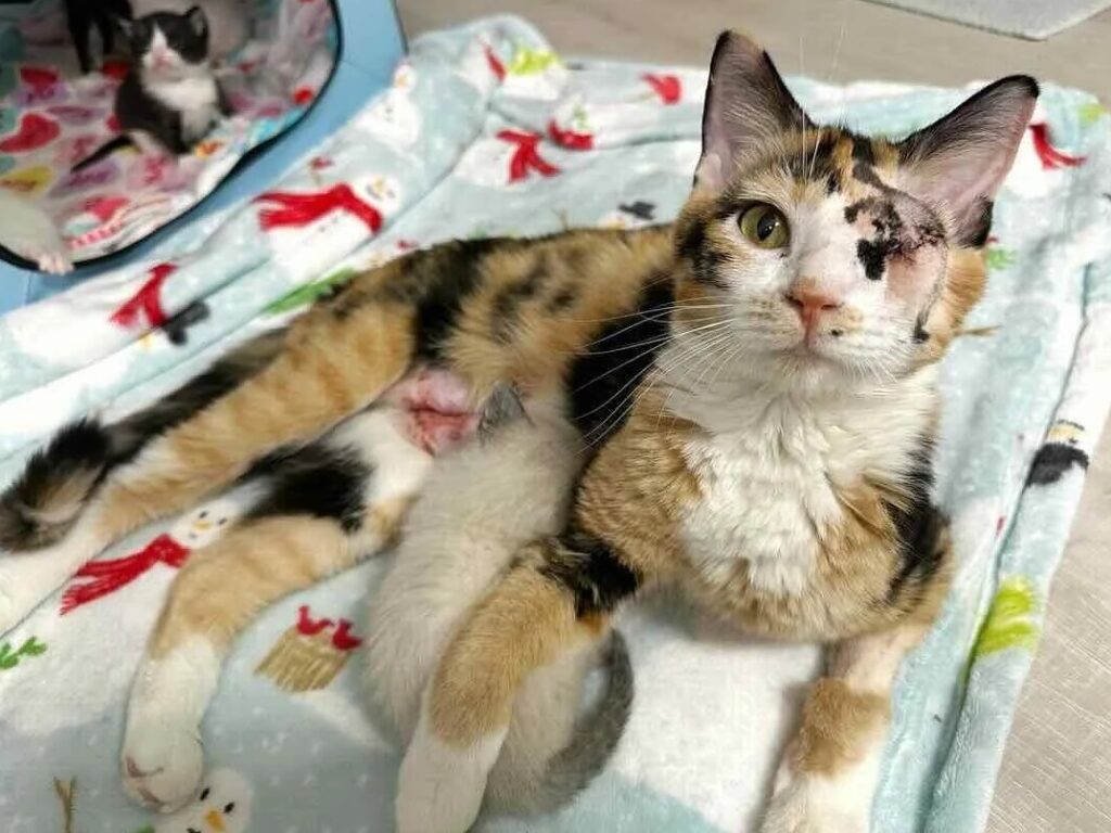 And behind the scenes, something beautiful was happening. The community rallied around Snow White’s story. Donations poured in to cover her surgery, her medicines, her babies’ care. People who had never met this one-eyed calico believed her life—and the lives of her kittens—were worth saving.