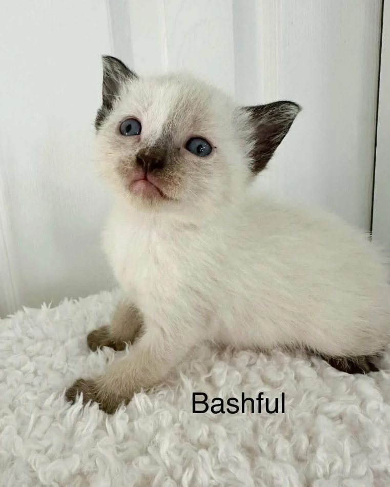 - Bashful, a tiny chimera beauty with striking half-and-half markings.