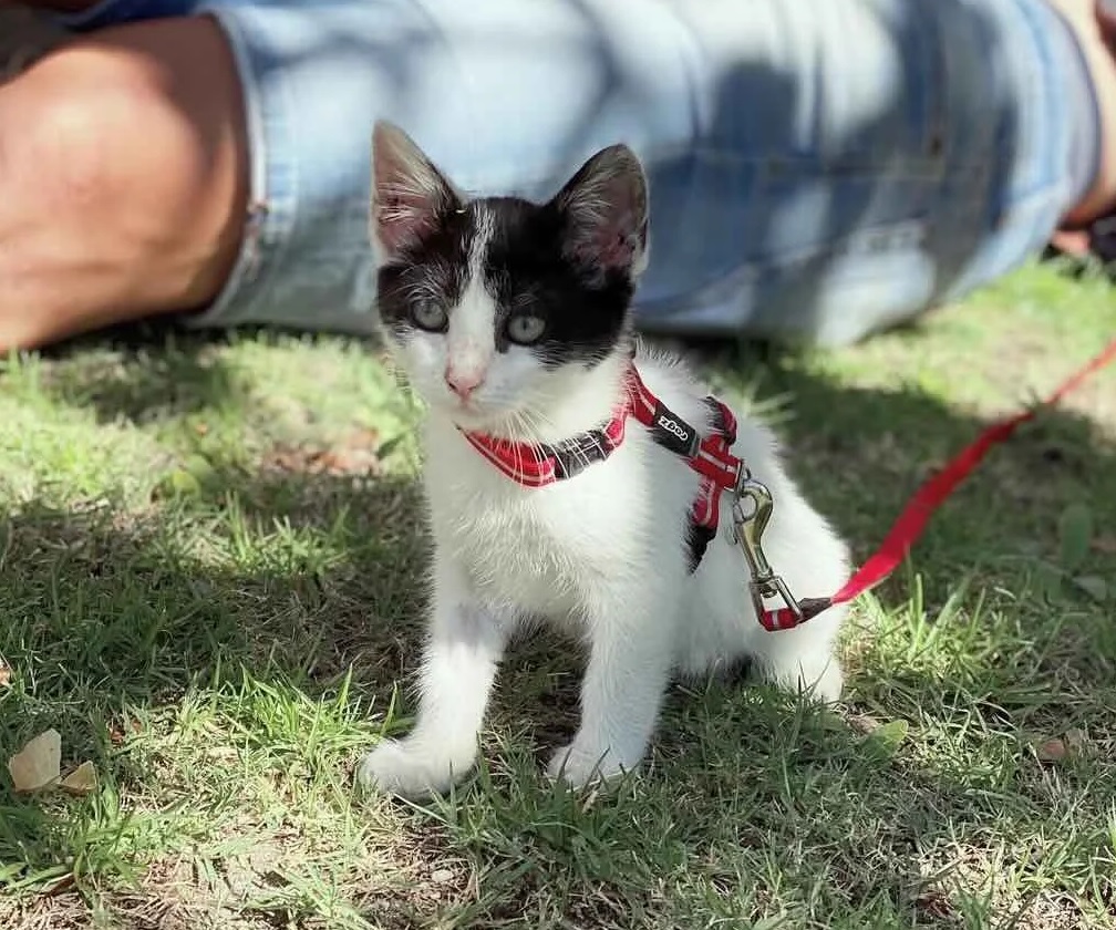 He discovered the joy of harness walks in the garden. Each step into the grass was a revelation—the rustle of leaves, the scent of soil, the thrill of being outside while still safe. He strutted like a miniature panther, claiming every inch of the yard as his kingdom.