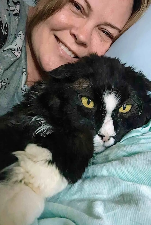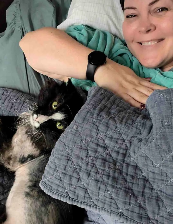 Now, Panda spends his days lounging on Katie’s bed, soaking up the warmth of sunbeams, and reveling in the peace he fought so hard to find. His story has already touched countless hearts, reminding us all that no cat—no matter how old, how rough, or how overlooked—is beyond saving.