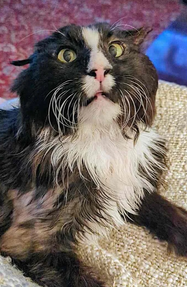 With his round, oversized body and black-and-white coat, he looked every bit like a grumpy panda bear. But what sealed it was his expression—stern, wise, and somehow endearing, like an old man who’s seen too much but still secretly wants someone to fuss over him.