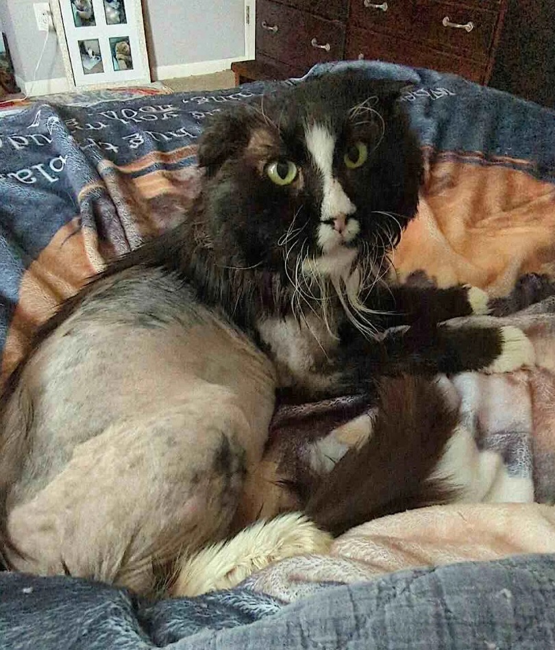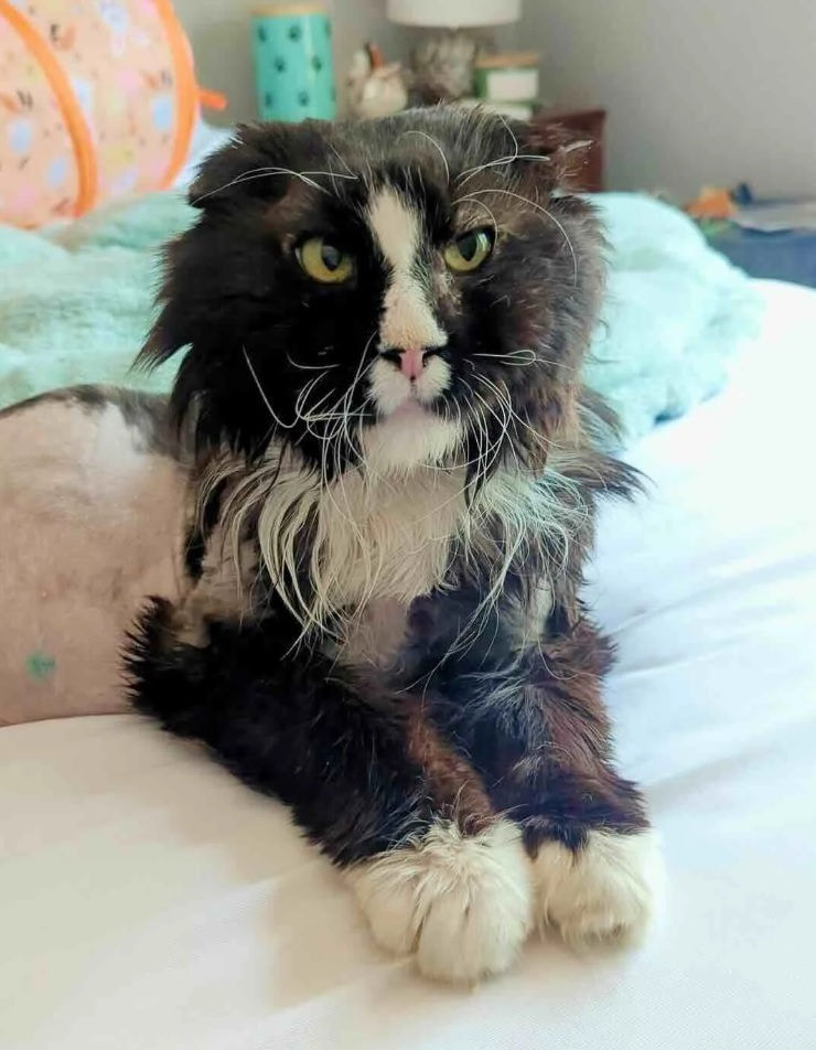 When Panda finally saw the vet, they shaved away the mats, leaving him with an accidental mohawk. And somehow, it fit him perfectly—like a wise old rocker starting a new chapter of life with a fresh edge.