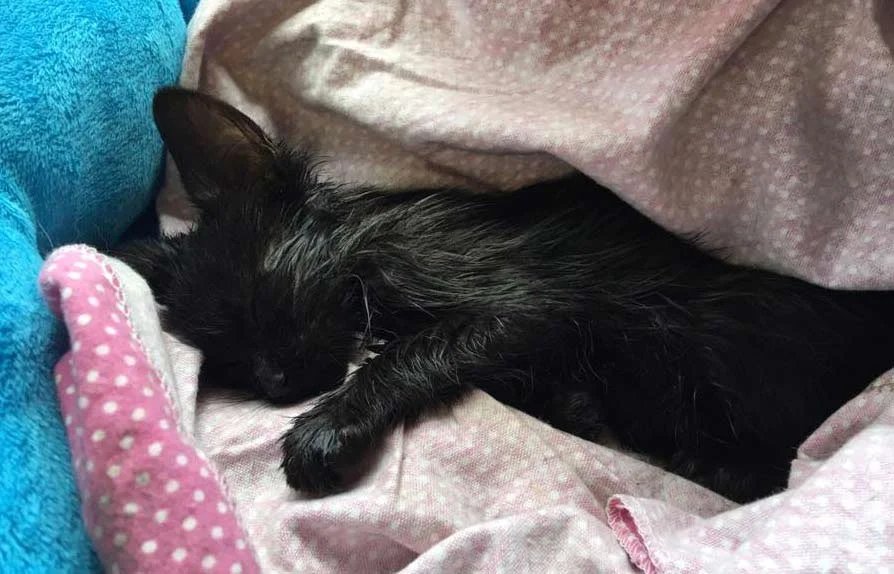 Rescued Oil-Drenched Kitten Finds Joy in New Life