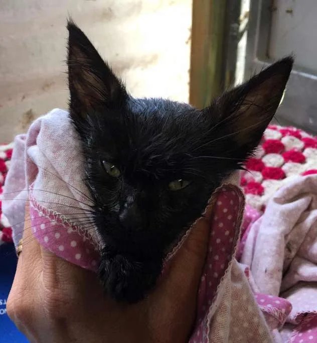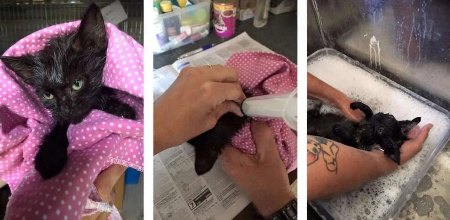In the heart of a bustling harbor city, where the scent of salt and sea lingered in the air, a tiny miracle was unfolding. The tale of a small, oil-drenched kitten would soon become one of resilience, love, and the transformative power of compassion.